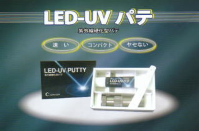 <特徴> ・無用剤樹脂のため充填後のヤセがありません。 ・紫外線硬化型で超速乾です。 ・専用LEDランプ使用で低電圧・低電力(単4×3本)。 ・コンパクトで持ち運びが簡単。 ・通常のUVランプでも硬化できます。 【LEDランプの仕様】 サイズ:長さ10㎝×直径3㎝ 本体重量:80g (電池含まず) <使用方法> ①パテ埋めをする箇所及び周りのゴミ、汚れを取り除き、傷、 穴にパテ液をヘラ等で充填します。 ②数秒~数十秒専用LEDランプの光をあてて硬化させます。 PET、ポリプロピレン等のシートをかぶせて光を当てることで より硬化性が向上します。(空気中の酸素を遮断する) ③硬化後、研磨して平滑面として完了です。 ※玄々化学のHPにて動画がありますので参照してください。 玄々化学”LED-UVパテ”紹介ページヘ <用途>(※写真はイメージです) 木材の穴埋めに! セラミックタイルの欠け部分に! 釘穴、タッカー跡に! パーチクルボードの木口に! コンクリートの穴埋めに! 石材の部分補修に! ホビー・クラフトの形成に!その他穴埋め全般に! LED-UVパテ専用着色剤 ・黒・白・黄・茶 各5gのセットです。 ・LED-UVパテに極少量添加するだけで、抜群の 着色力が得られます。 ※着色剤を多量に混合した場合は、UV照射後の硬化が 極端に悪くなるのでご注意下さい。